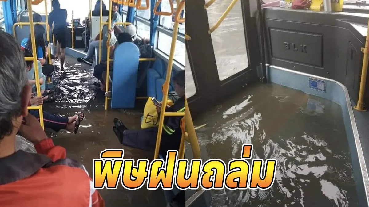 พิษฝนถล่มกรุงฯ น้ำทะลักไหลเข้ารถเมล์ ท่วมมิดสุดทางเดิน