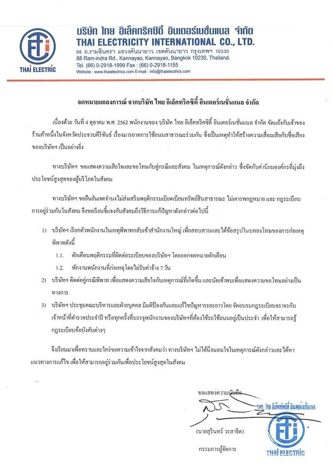 เเละความคืบหน้าล่าสุด พบว่า ทางบริษัทต้นสังกัดหนุ่มรายดังกล่าว ได้ตรวจสอบและได้ดำเนินการลงโทษพนักงานหนุ่มรายนี้ โดยการออกจดหมายตักเตือน และพักงานโดยไม่ได้รับค่าจ้างเป็นเวลา 7 วัน ทั้งนี้ บริษัทดังกล่าวได้ระบุว่า ไม่สนับสนุนพฤติกรรมดังกล่าว และ จะมีการจัดอบรมเรื่องระเบียบกับพนักงาน