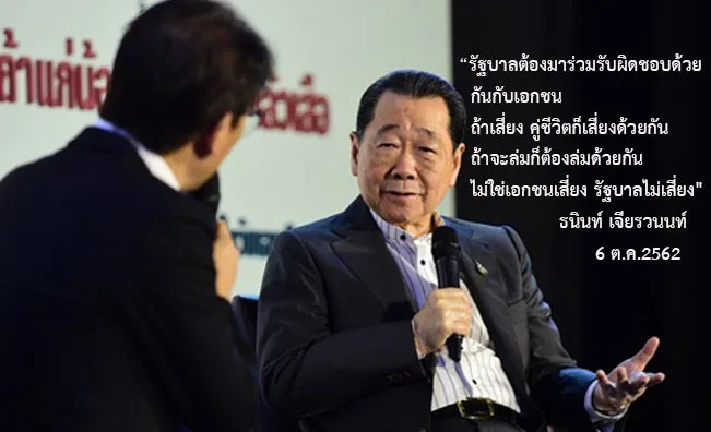 นายธนินท์ เจียรวนนท์ ประธานอาวุโสซีพี เผยรถไฟความเร็วสูงเชื่อม 3 สนามบินเป็นเรื่องใหญ่ของประเทศ ยอมรับมีความเสี่ยง ระบุชัดใน TOR ให้เอกชน-รัฐต้องรับผิดชอบด้วยกัน ชี้หากอีอีซีไม่เกิดเพราะความชักช้า เศรษฐกิจไทยจะถดถอย นักลงทุนย้ายฐานไปเวียดนามและอินโดนีเซีย