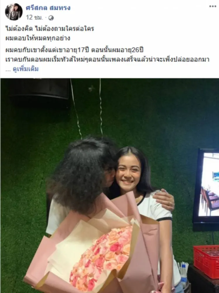 จากกรณีผู้ใช้เฟซบุ๊กชื่อ ศรีสกล สมทรง นักร้องวง L.กฮ. ได้โพสต์ภาพคู่ลำไย และข้อความระบุว่า ไม่ต้องคิด ไม่ต้องถามใครต่อใคร ผมตอบให้หมดทุกอย่าง ผมคบกับเขาตั้งแต่เขาอายุ17ปี ตอนนั้นผมอายุ26ปี เราคบกันตอนผมเริ่มทัวส์ใหม่ๆตอนนั้นเพลงเสร็จแล้วน่าจะเพิ่งปล่อยออกมา ตอนนั้นเขาก็ร้องเพลงรับงานทั่วๆไปธรรมดาๆ เขาก็เป็นเด็กคนนึงที่ขยันมากๆถึงมากที่สุด อยากทำงานอยากมีเงินอยากสุขสบายหาเงินเลี้ยงปากเลี้ยงท้องของคนที่เขารัก เขาอดทนมากๆน่ะครับ ตลอดเวลาที่เราคบกัน มีกระแสเยอะแยะมากมาย มีข่าวสารพัดว่าเขาอย่างโน้นอย่างนี้ ส่วนผมก็โดนด่าเรื่องแนวเพลง ผมว่าเรา2คนมีอะไรคล้ายๆกันเยอะมากๆ เราจะเข้าใจกันและอยู่เคียงข้างกันมาตลอด เราคบกันมา4ปีแล้วครับตั้งแค่คบกันมาผมบล็อคเฟสเขามาตลอด ด้วยหลายๆเหตุผล เขาบ่นบ่อยๆว่าเราเป็นแฟนกันแค่ในไลน์เหรอ ทำไมเราทำแบบคนอื่นไม่ได้