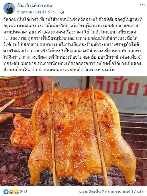 โซเซียลเป็นประเด็นถกเถียง ไก่ย่างวิเชียรบุรี ราคาสูงขึ้นจนน่าตกใจ