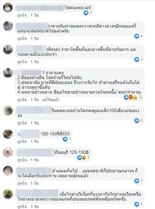 อย่างไรก็ตาม ก็มีบางคนเห็นต่างบอกว่าเหมาะสมแล้ว กับราคาที่เป็นอยู่ เพราะการปรุงแต่งวัตถุดิบต้องใช้ความพิธีพิถันอย่างมาก ตั้งแต่การหมักไก่และการทำน้ำจิ้มให้อร่อยถูกปากคนชอบทานไก่ย่าง ทำให้ประเด็นดังกล่าวได้รับความสนใจมากและวิพากษวิจารณ์กันเป็นอย่างมาก