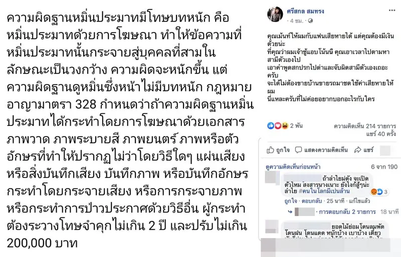 อย่างไรก็ตาม ในเรื่องน่ายินดีนี้ก็เกิดเรื่องดราม่าเข้าจนได้ เมื่อมีคนเข้ามาวิพากษ์วิจารณ์ทั้งเจ้าตัวและแฟนสาวในทางเสียหาย พร้อมแฉว่า เจ้าตัวนั้นเป็นคนเจ้าชู้ จน ปุ้ย ต้องออกมาคอมเมนต์ตอบโต้เดือด และขู่ฟ้องคนที่เข้ามาวิจารณ์ พร้อมแปะหน้ากฎหมายหมิ่นประมาทในเฟซบุ๊กส่วนตัวว่า "คุณเมนต์ให้ผมกับแฟนเสียหายได้ แต่คุณต้องมีเงินด้วยนะ ที่คุณว่าผมเจ้าชู้แอบโน้นนี่ คุณเอาเวลาไปตามหาสามีตัวเองไป เอาคำพูดสกปรกไปด่าและจับผิดสามีตัวเองเถอะครับ จะได้ไม่ต้องขายบ้านขายรถมาชดใช้ค่าเสียหายให้ผม นี่แหละครับที่ไม่ค่อยอยากบอกอะไรกับใคร"