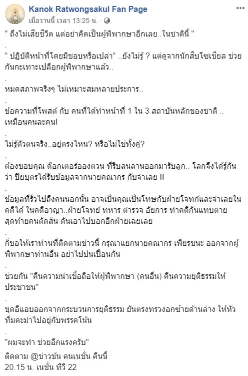 ภาพ เฟซบุ๊ก Kanok Ratwongsakul Fan Page