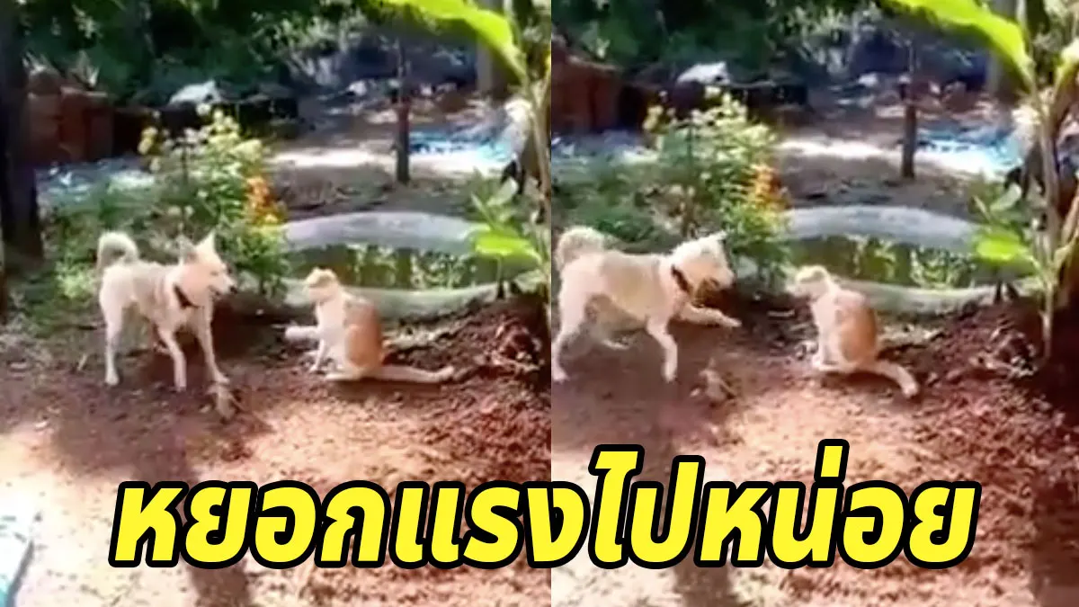หยอกแรง น้องหมา โชว์วิชามวยไทยจระเข้ฟาดหางใส่ น้องเหมียว คู่อริ (คลิป)