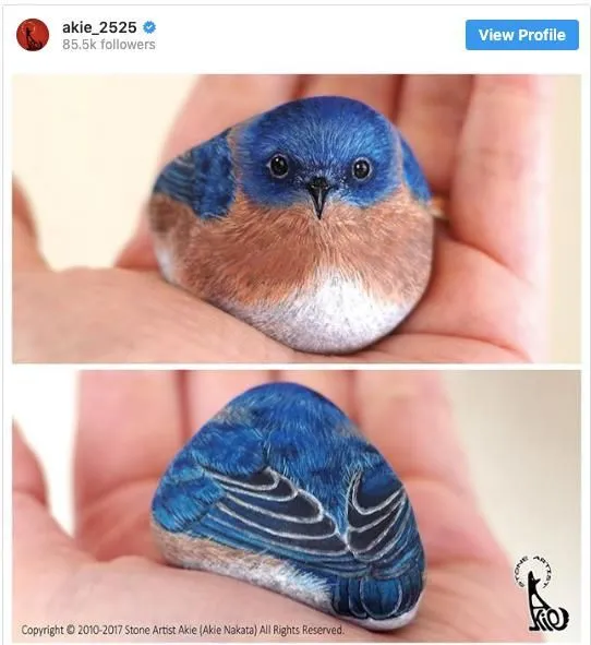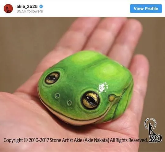 Akie ได้ยกระดับศิลปะให้ขึ้นไปสู่อีกระดับหนึ่งและการสร้างสรรค์ที่น่ารักของเธอนั้นเป็น ‘สิ่งจำเป็น’ สำหรับผู้ที่รักงานศิลปะ ศิลปินทำให้หินกลายเป็นตัวละครและเธอปฏิบัติต่อชิ้นส่วนของเธอเหมือนสัตว์ที่มีชีวิตจริงๆ เป็นเรื่องที่น่าสนใจว่าสีอะครีลิคจะทำให้หินเหล่านี้มีชีวิตขึ้นมาได้อย่างไร