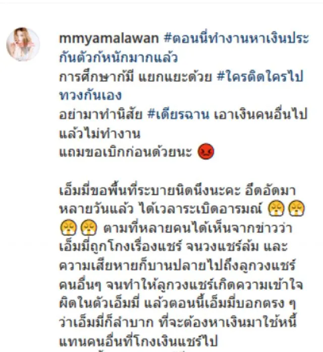 ทำเอาหลายๆคนตกอกตกใจ สำหรับสาว แฟนๆตกใจ เอมมี่ แม็กซิม โพสต์ภาพร้องไห้หนัก ลงไอจี โดยเป็นข้อความระบายความอัดอั้น โดยโพสต์ข้อความระบุว่า ตอนนี่ทำงานหาเงินประกันตัวก้หนักมากแล้ว การศึกษาก็มี แยกแยะด้วย ใครติดใครไปทวงกันเอง อย่ามาทำนิสัย แบบนี้ เอาเงินคนอื่นไปแล้วไม่ทำงาน แถมขอเบิกก่อนด้วยนะ