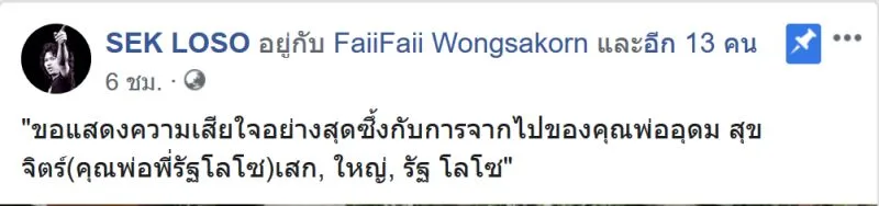 เสก ใหญ่ รัฐ โลโซ ทั้งนี้ หลังโพสต์ดังกล่าวเผยแพร่ไป ก็มีคนเข้ามาแสดงความเสียใจกับพี่รัฐ จำนวนมาก