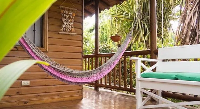ขึ้นมาด้านบน พื้นที่หน้าบ้านเหมาะสำหรับทำกิจกรรมกัน พื้นที่ตรงนี้มีความอบอุ่น เปลผูกหน้าบ้านนอนเล่นรับลม บรรยากาศลมพัดผ่านเย็นสบาย เอากลิ่นดอกไม้รอบบ้านเข้ามาด้วย เพียงแค่คิดก็มีความสุขครับ