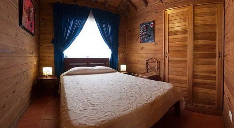 ภายในห้องนอน เตียงนุ่มๆ ท่ามกลางผนังไม้ตกแต่งห้องด้วยควาสวยงาม เพียงมองเท่านี้แลดูอากาศน่าจะเย็นมากจากธรรมชาติ คงไม่ต้องพึงเครื่องปรับอากาศแต่อย่างใด