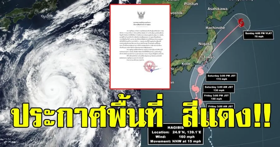 เปิดพื้นที่สีแดง ในประเทศญี่ปุ่น หลังอีกไม่กี่ชั่วโมงต้องเจอ ซูเปอร์ไต้ฝุ่น ฮากิบิส ที่ใหญ่ที่สุดในประวัติศาสตร์