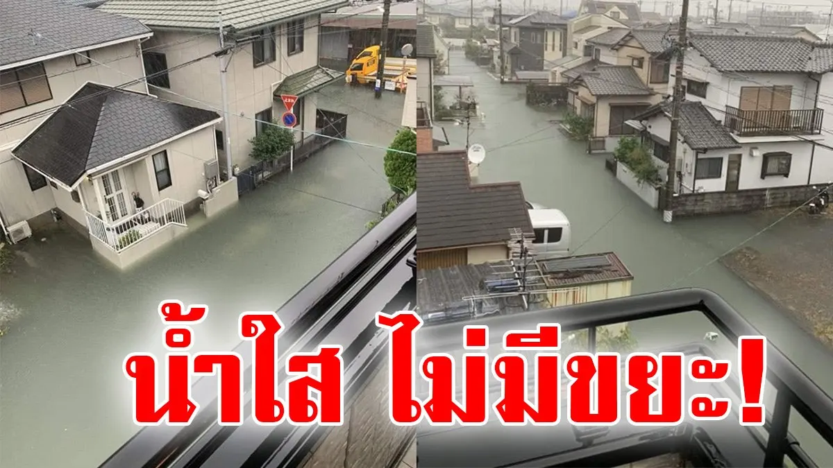 น่าทึ่งมาก น้ำท่วมที่ญี่ปุ่น น้ำสะอาด ไม่เห็นขยะลอยเลย