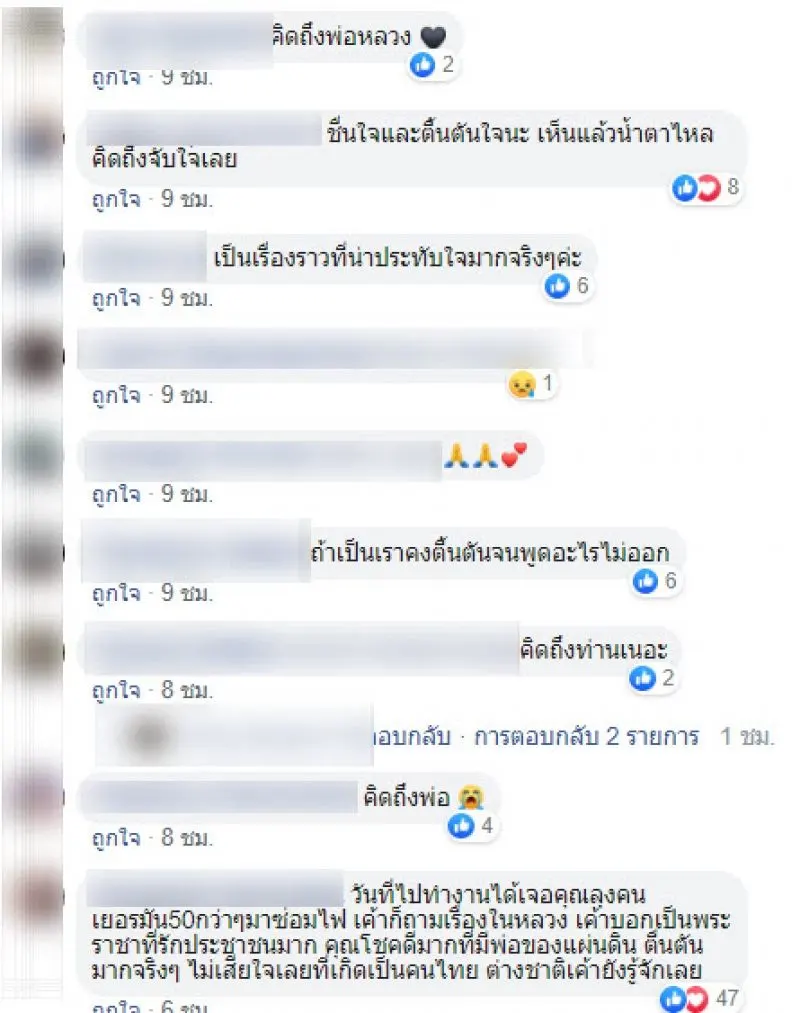ยิ่งทำให้ชาวไทยทั้งปลาบปลื้มที่แม้กระทั่งชาวต่างชาติยังรักและเคารพพ่อหลวงรัชกาลที่ 9 ของไทย นอกจากนี้ยังมีอีกหลายคนที่คิดถึงพระองค์ท่านสุดดวงใจ เข้ามาแสดงความคิดเห็นกันอย่างต่อเนื่อง บางก็เข้ามาคอมเม้นต์ว่า อ่านแล้วน้ำตาไหล คิดถึงพระองค์ท่าน บ้างก็เข้ามาคอมเม้นต์ว่า ต่างชาติ..เขายังรักพ่อหลวง ของเรามากขนาดนี้ แล้วเรา คนไทยจะไม่รักพ่อหลวงของเราเชียวหรือคะ รักพ่อหลวง คิดถึงพ่อหลวง น้ำตาไหลเหมือนกันค่ะ