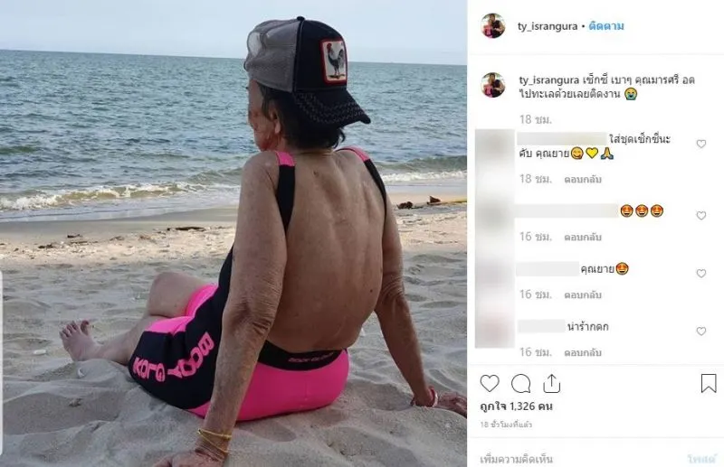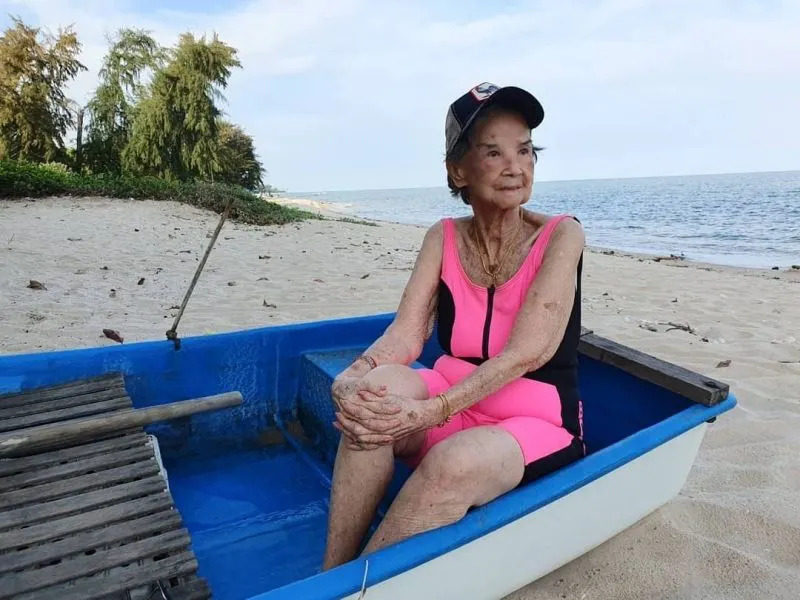 คุณยายมารศรี ในชุดว่ายน้ำ ทริปเที่ยวทะเล ในวัย 97 ปี ที่ยังแข็งแรงมากๆ