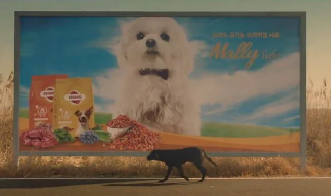 การเดินทางของมันผ่านทั้งป้ายโฆษณาเกี่ยวกับสุนัข ที่แสดงให้เห็นว่าหมาสีอื่นได้รับความนิยมมากกว่าสีดำ