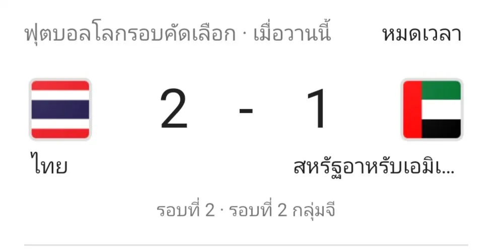 ไทยขึ้นนำ ยูเออี ตีตามถึง