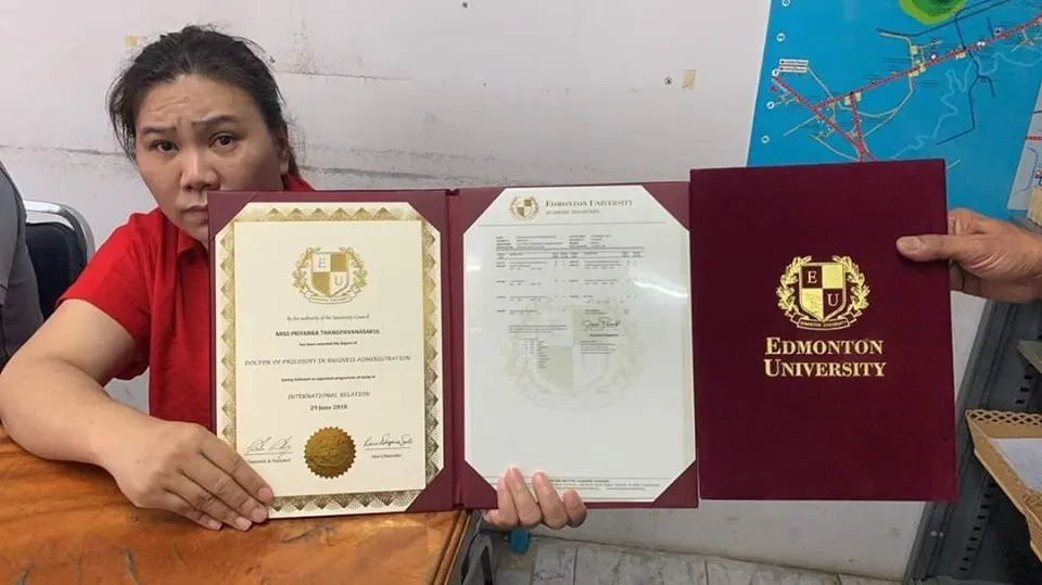 ทั้งนี้ จากการ ตรวจสอบ พบว่า นางสาวปริยันก้า ตั้งภาวนาสกุล และ นายชนุตม์ สีสังข์ มีเอกสารประกาศ จบดอกเตอร์ จาก EDMONTON UNIVERSITY ประเทศอเมริกา สอบถามอ้างว่า เรียนออนไลน์ผ่านอินเตอร์เน็ต และ ส่งใบจบการศึกษามาให้โดยไม่ต้องไปรับที่ อเมริกา แต่อย่างใด เบื้องต้นฝ่ายสืบสวนไม่ปักใจเชื่อ น่าจะเป็นใบประกาศสร้างความน่าเชื่อถือให้กับสมาชิก เพื่อหลอกประชาชน