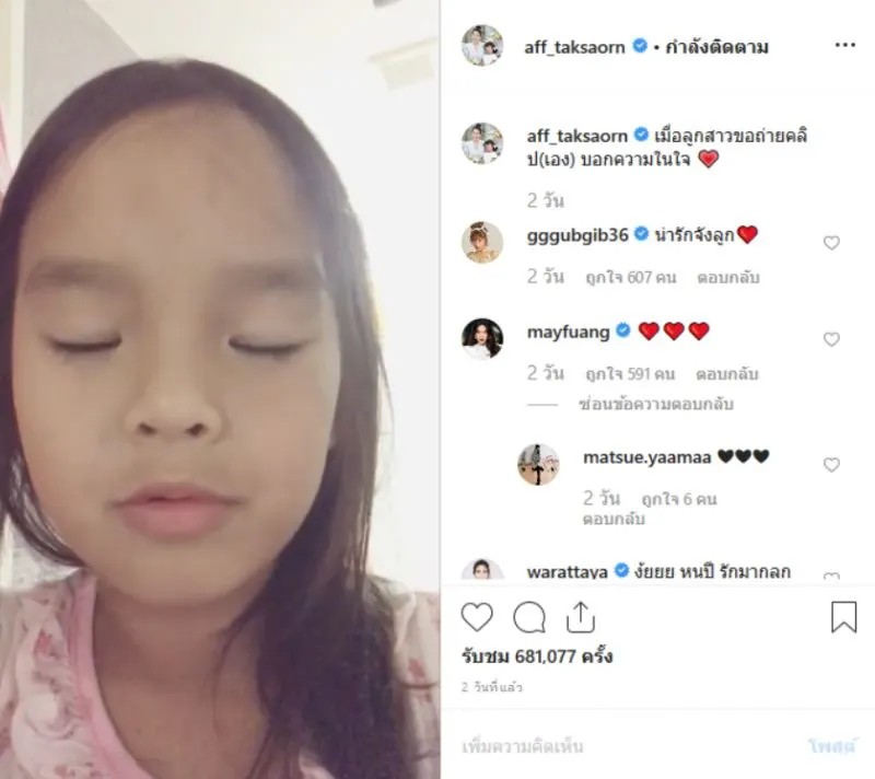 แอฟ โพสต์คลิปน้องปีใหม่ บอกความในใจ หมวดอ๋อ ทนไมไหว โผล่คอมเม้นท์