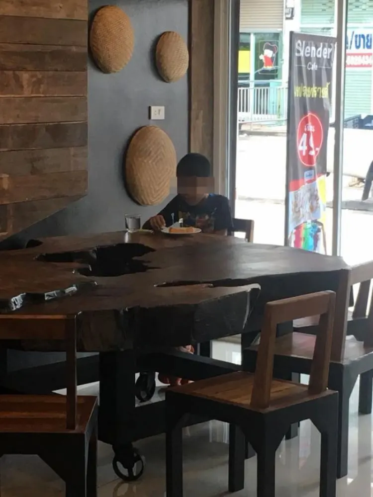 น้อง : น้องหันไปมองที่เมนูเห็นขนมปังแล้วชี้ใส่ขนมปังที่ราคาถูกที่สุดแล้วน้องก็ก้มน่านับตังค์
