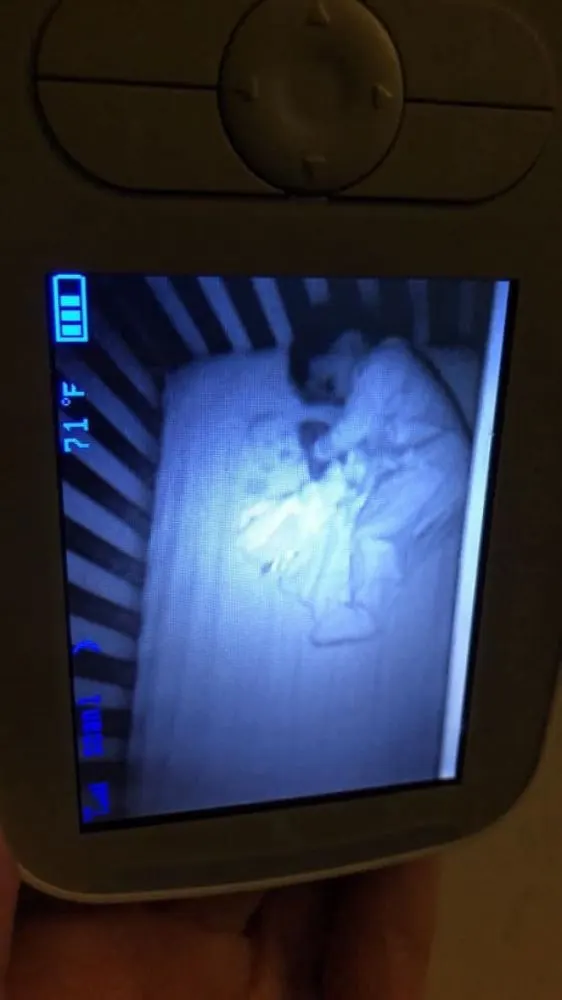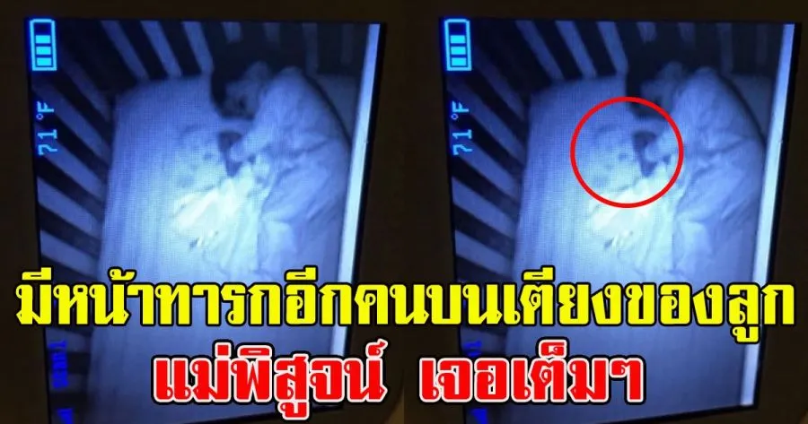 แม่ เปิดดูภาพในกล้อง มีหน้าทารกอีกคนบนเตียงของลูก