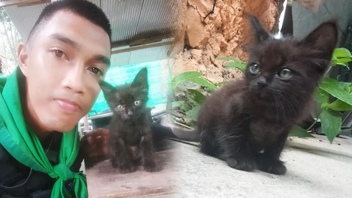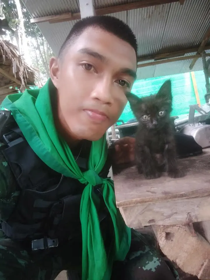 แมวน้อยไร้แม่วิ่งเข้ามาอ้อนพี่ทหาร 3 จังหวัดชายแดนใต้ วิงวอนขอร้องให้ช่วยพากลับไปด้วยที