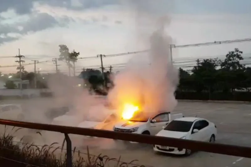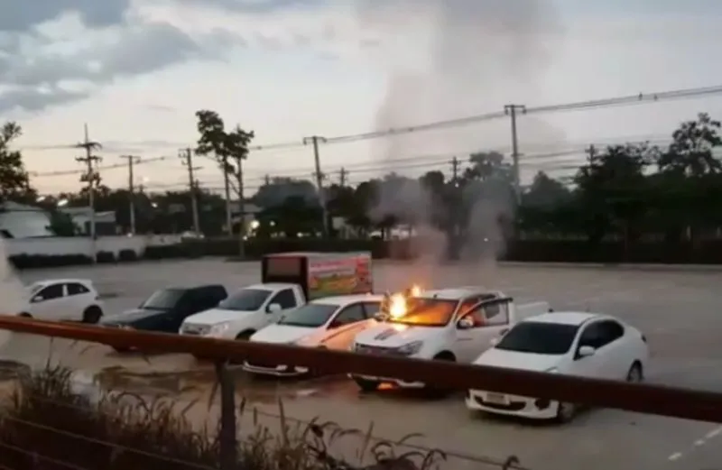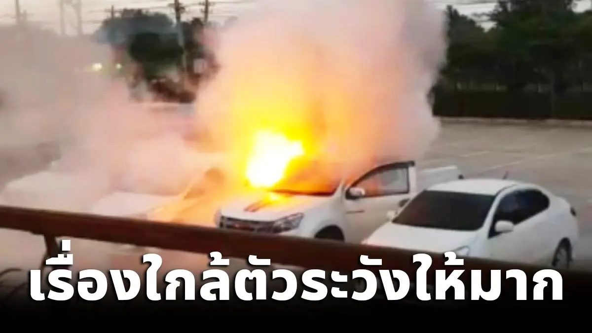 กระบะไฟลุกท่วม หลังทิ้งแบตสำรอง ไว้ในรถ