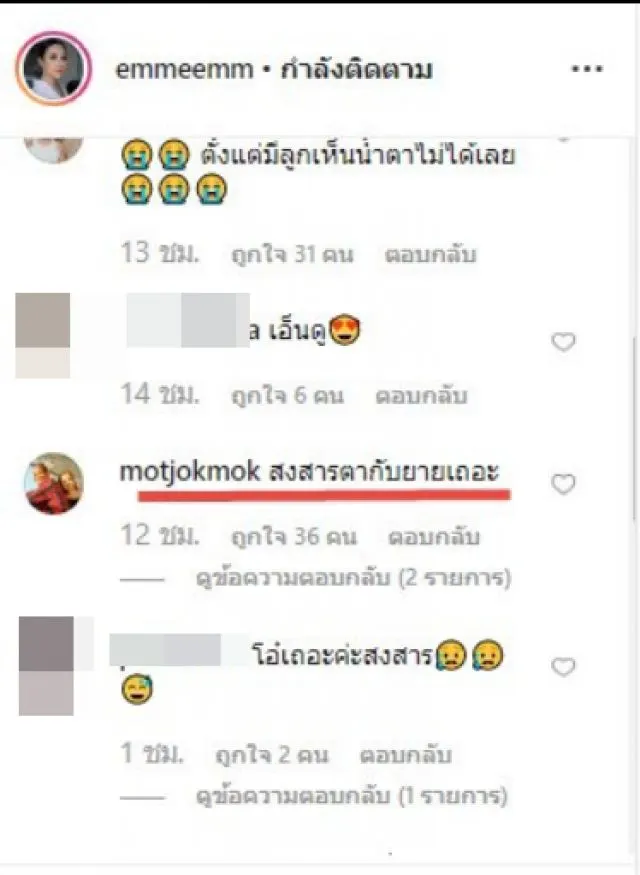 คุณแม่มดไม่พอใจถึงขนาดโพสต์ขอร้องลูกสาวตัวเองให้สงสารเถอะในโพสต์ของสาวเอ็มอีกด้วย