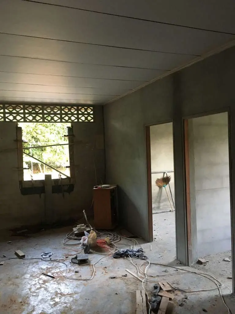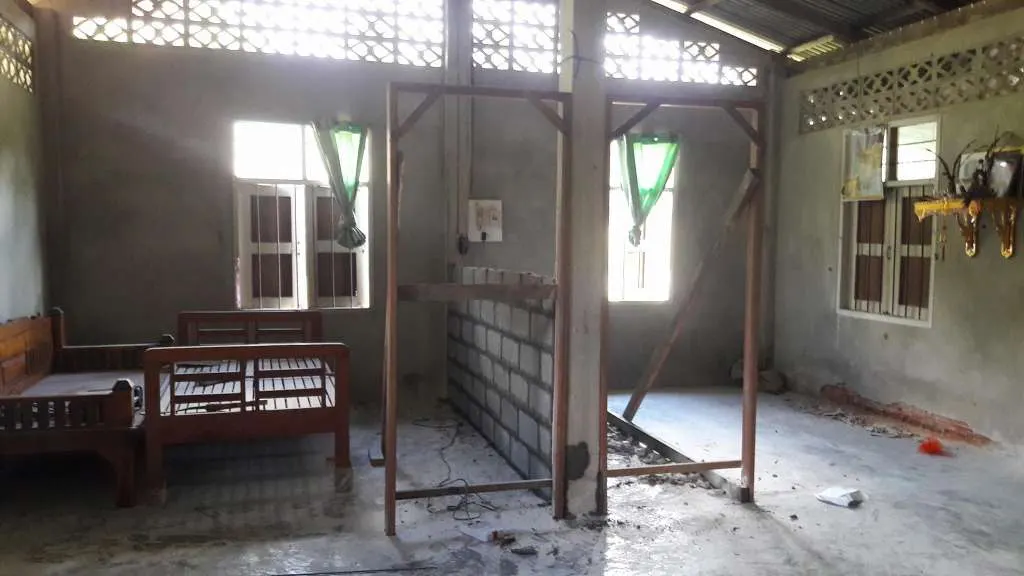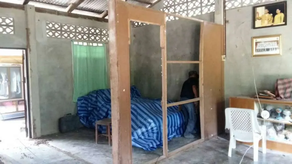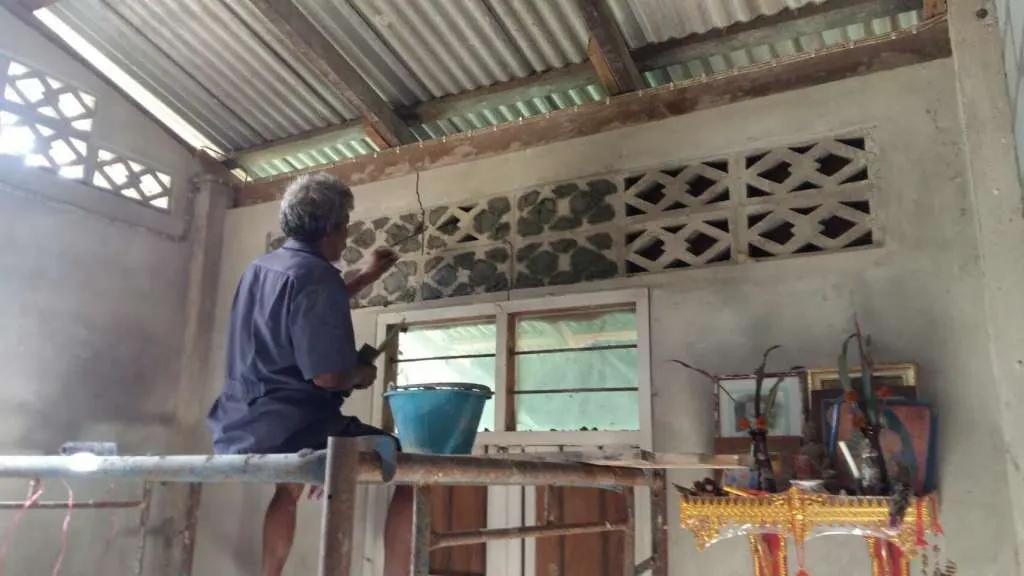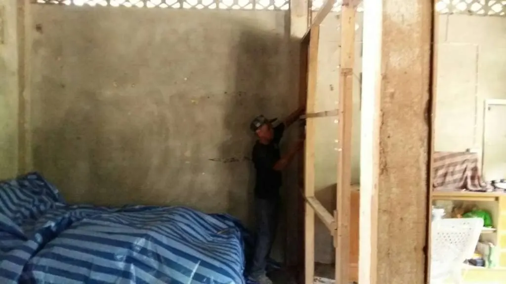 หลังจากที่ช่างได้ทำการรื้อผนังห้องแล้วก็ทำการก่ออิฐเพื่อกั้นเป็นห้องนอน
