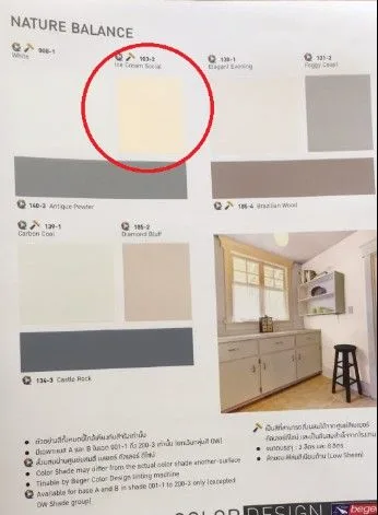 เสร็จแล้วก็มาในส่วนของสีบ้านครับ ส่วนมีทำเจ้าของกระทู้กลุ้มใจมากเนื่องจากว่าต้องทาถึง 2 ครั้ง เพราะครั้งแรกเจ้าของกระทู้ได้คุยกับคุณแม่โดยผ่าน Line Vdo Call เพื่อเลือกสีโดยมีข้อสรุปมติกันว่าเอาสีโทนครีมๆ วนิลา มันแลดูนวลตา ไม่ฉูดฉาดจนเกินไปครับ เมื่อคุณแม่ไปซื้อสีมาไม่รู้ไปคุยกับทางร้านสีอะไรยังไง เพราะสีที่ได้มานั้นคนละโทนกับที่ตกลงกันไว้เล๊ยยยย 555+ ซึ่งเจ้าของกระทู้จะโทรไปสอบถามความก้าวหน้าทุกวัน แต่วันที่ทาสีนั้นคุณแม่จะไม่เปิด VDO Call ให้ดูเลย แต่เจ้าของกระทู้ก็โทรหาพี่ชายให้ส่งรูปมาให้ พอเห็นรูปแล้วถึงกับช็อค!!! 5555+ สีที่เราได้มีมติกันไว้ครับ