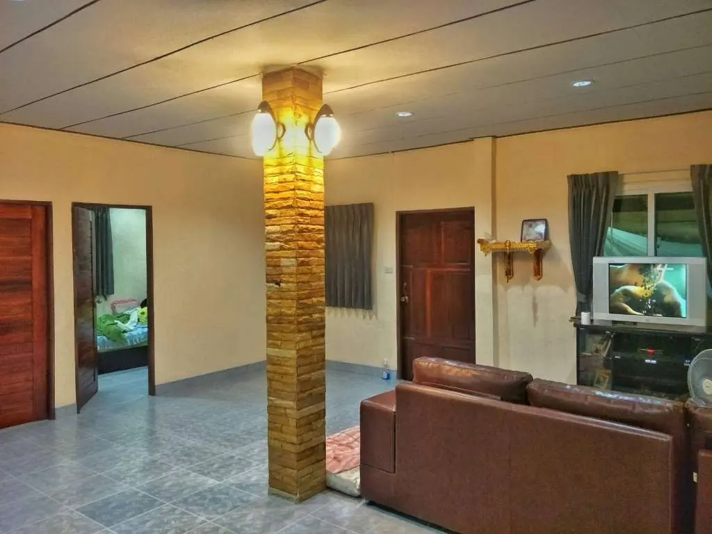 โคมไฟติดรอบเสากลางบ้านเสร็จแล้ว หน้าตาก็จะประมาณนี้ครับ และเนื่องจากสภาพอากาศที่บ้านค่อนข้างร้อนเกือบทั้งปี เจ้าของกระทู้ก็เลยติดแอร์ไว้ในห้องนอนทั้ง 2 ห้อง ให้คุณแม่กับคุณยายไว้นอนสบายกันเลยทีเดียว