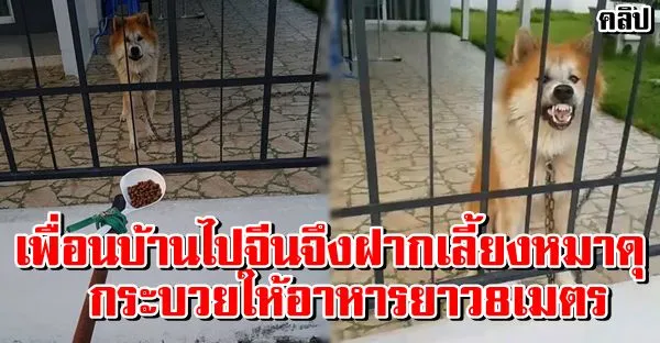 เมื่อไม่นานมานี้ผู้ใช้งานเฟสบุ๊กคุณ : Woon Waralee ได้เผยเรื่องราวของสุนัขตัวหนึ่ง มันเป็นสุนัขของเพื่อนบ้านชาวจีน ซึ่งเขานั้นฝากเธอให้อาหารน้องทุกวัน เพราะน้องไม่มีใครกล้ารับไปเลี้ยง ขนาดที่ว่าร้านรับฝากเลี้ยงหมาแมวยังไม่เอาเพราะน้องดุมาก เวลาให้อาหารจึงต้องใช้กระบวยวิเศษยาว 8 เมตรของหลวงปู่เค็มเอ้ย! ไม่ใช่