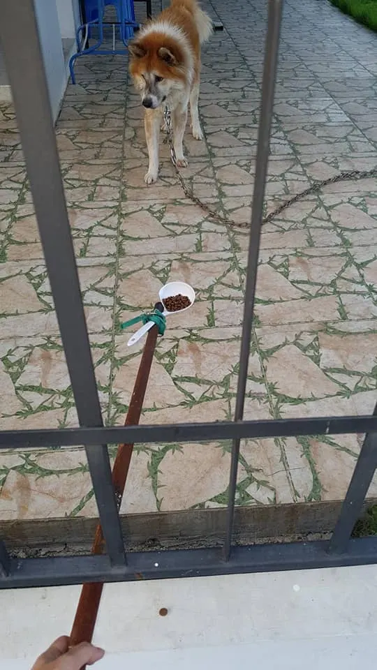 กระบวยให้อาหารยาว 8 เมตร เพราะเพื่อนบ้านกลับต่างประเทศ ใจนึงก็กลัวเพราะน้องเป็นหมาดุมากๆ
