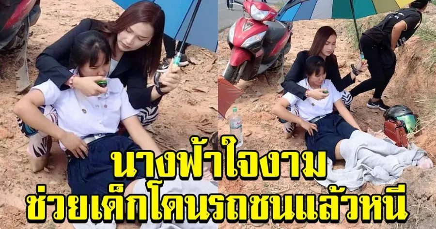 สาวสวย น้ำใจงามช่วยเด็ก โดนรถชนแล้วหนี