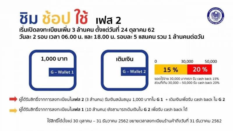 ชิมช้อปใช้เฟส 2 ยังคงรูปแบบให้เงิน 1,000 บาท เหมือนกันกับเฟสแรก