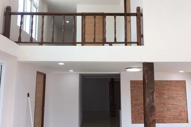 ถึงแม้จะมีการรีโนเวทแล้ว บางส่วนก็คงไว้ซึ่งโครงสร้างของบ้านหลังเดิม เสาบ้านที่เป็นไม้ ราวกันตกชั้นบนที่เป็นไม้ ส่วนผนังปูนทาด้วยสีขาว สวยงามลงตัวอย่างมาก
