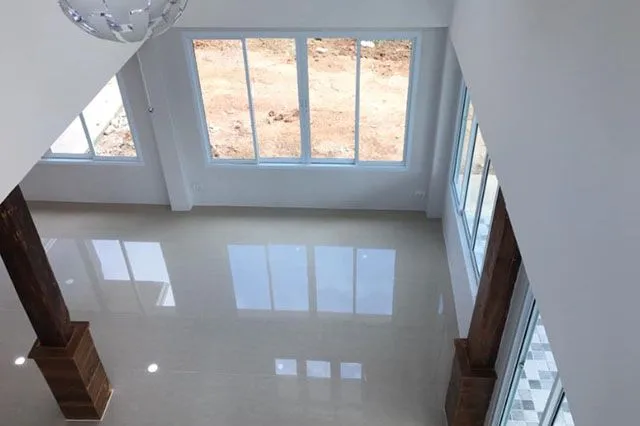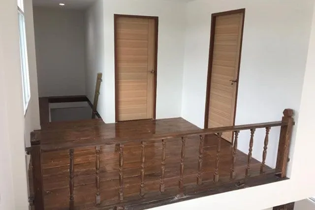 ห้องโถงชั้นบน พื้นทำจากไม้ มีการขัดไม้เก่าแล้วลงเคลือบเงาอย่างดี เนื่องจากเป็นไม้เก่าที่ผ่านการใช้งานมาหลายปี เรื่องความคงทนหายห่วงแน่นอน