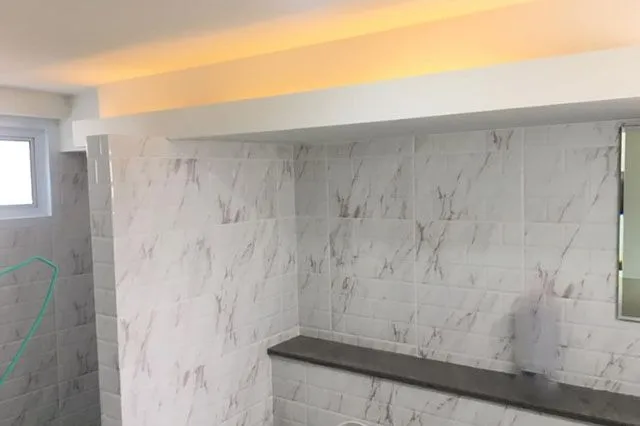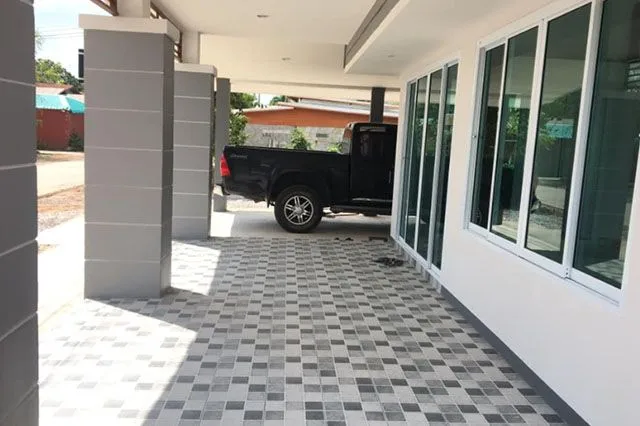พื้นด้านหน้าประตูทางเข้า ปูกระเบื้อง