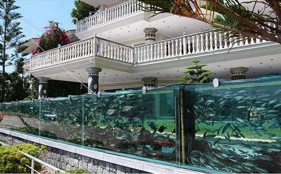 ชาวตุรกีคนนี้ก็เช่นเดียวกัน ที่ต้องบอกว่านอกจากความอลังการในตัวบ้านคงยังไม่พอ เขายังได้สร้าง “อควาเรียม” หรือ “ตู้ปลา” เป็นรั้วรอบบ้านอีกด้วย ซึ่งตู้ปลาที่เห็นมีความยาวกว่า 50 เมตร เลยทีเดียว