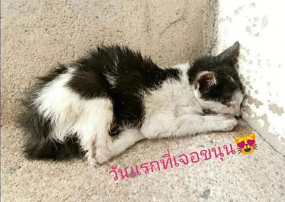 โดยเจ้าของโพสต์ได้ระบุข้อความเอาไว้ว่า ก่อนจะเป็นขนุนคุณชายแมวจร ปีที่แล้วขนุนตัวเล็กๆๆและมาจากไหนไม่รู้ขนุนมานอนคุดตัวสั่นๆอยุ่หน้าร้านเรา เราเลยเอาน้ำและปลาเส้นให้เพราะไม่เคยเลี้ยงแมวเลยไม่มีอาหารแมว จนเราเปิดร้านเสร็จ ขนุนก็ยังไม่กินอะไร