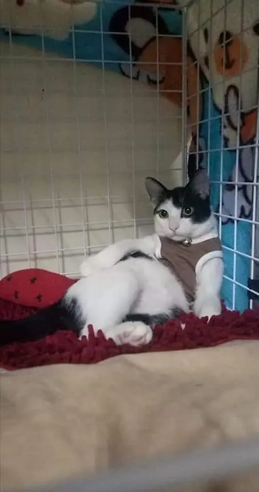เลาเลยอุ้มขนุนขึ้นมา ทำให้เห็นที่ใต้ท้องจนถึงสะโพกบวมและมีแผลและมีกลิ่นแรงมาก หางก็หัก เราเลยไม่รอช้า พาขนุนไปหาหมอทันที และรักษาขนุนอยุ่เกือบ2เดือน แผลหายปกติ แต่…ขนุนกลับมีปัญหาเรื่องขับถ่ายไม่ออก เลยพาหาหมอ หมอสวนออกให้2ครั้งขนุนร้องเสียงดังเพราะเจ็บ
