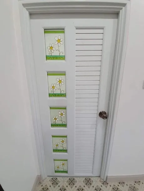 ภายในตัวบ้านใช้สีทาภายในโทนสีขาว กระเบื้องปูพื้นสีครีมของแกรนิตโต้ และติดตั้งบัวสีขาว เพื่อให้ส่วนที่เป็นผนังกับพื้นดูเป็นมิติและมีสัดส่วนอย่างลงตัว ประตูห้องนั้นเลือกใช้ประตูไม้สีขาว ในส่วนประตูส่วนที่จะออกทางหลังบ้านนั้น เจ้าของบ้านเลือกใช้ประตูกระจกบานพับขอบสีดำ ฝ้าของบ้านเป็นแบบฝ้าฉาบเรียบสีขาว เมื่อเข้ามาภายในบ้านมองโดยภาพรวม ให้ความรู้สึกสะอาดโล่งโปร่ง