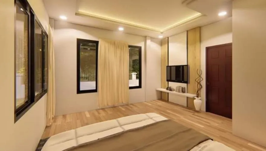 ห้องนอนตกแต่งดีงาม กระจกห้องนอนพอสมควร ให้แสงสว่างในตอนกลางวัน เปิดรับอากาศก็เข้าออก ถ้ายเทสะดวก ทำให้การพักผ่อนเป็นไปด้วยความสุข พักผ่อนเต็มที่