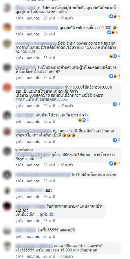 สำหรับโพสต์ดังกล่าวได้รับความสนใจจากชาวเน็ตเป็นอย่างมาก หลานคนมองว่าเงินเดือนน้อยไปสำหรับคุณสมบัติที่เพียบพร้อมขนาดนี้ หรือควรจ้างแม่บ้าน /พี่เลี้ยงเด็ก/แม่ครัว แยกตามตำแหน่งในเงินเดือน 15,000