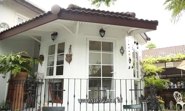 โดยบ้านหลังนี้เป็นบ้านสีขาว มีกระจกรายล้อมรอบด้าน เพื่อให้มองเห็นวิวสวนสวยภายนอก และให้แสงแดดธรรมชาติสาดส่องเข้ามาได้อย่างเต็มที่ ภายในตกแต่งแบบเรียบง่าย งดงามตามสไตล์วินเทจ เน้นสีขาว สีน้ำตาล และงานไม้เป็นหลัก
