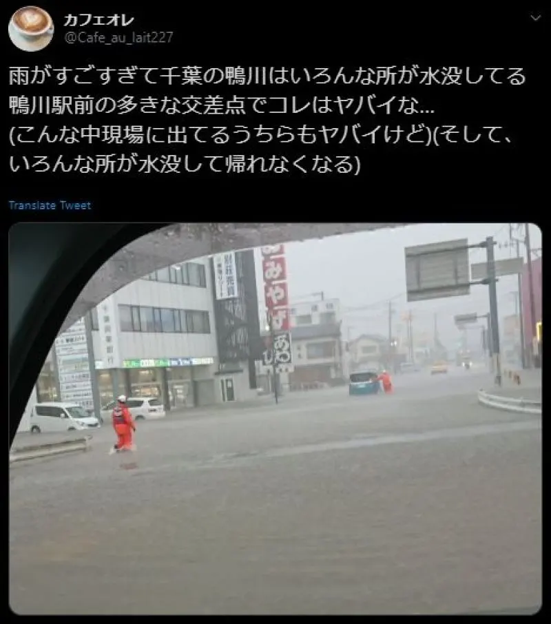 กรมอุตุฯญี่ปุ่นแจ้งว่า ไต้ฝุ่นบัวลอย ทำให้ฝนตกหนักต่อเนื่องในเขตคันโต โดยเฉพาะในจังหวัด ชิบะ น้ำท่วมแล้ว และอาจเกิดดิน ถ ล่มในหลายพื้นที่ ขอให้ประชาชนที่มีการแจ้งเตือนจากทางการ ให้เตรียมอพยพ ตอนนี้ทำให้รถไฟสาย JR Uchibo หยุดวิ่งบางช่วงแล้วเนื่องจากฝนที่ตกหนัก