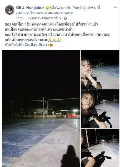 เป็นอีกหนึ่งเรื่องราวที่ทำเอาชาวเน็ตขนลุกกันไปตามๆกัน เมื่อผู้ใช้เฟซบุ๊ก Oil J. Homjabok ได้โพสต์ภาพขณะที่ไปออกกำลังกายในสวนสาธารณะของ อบต.หนองกระทุ่ม อ.เมือง จ.นครราชสีมา