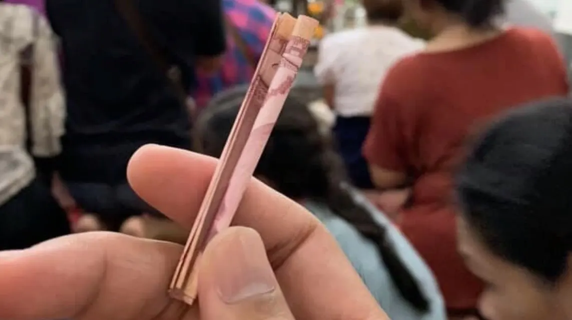 จากกรณีที่เฟซบุ๊กรายหนึ่งได้โพสต์ภาพธนบัตรใบละ 100 บาท พร้อมเล่าเหตุการณ์ว่า แบงก์ร้อยใบนี้ไม่ใช่ของผม ไม่ได้มีคนทำตก แต่มีคนตั้งใจโยนลงพื้นเพื่อที่จะให้คนเก็บ ผมและแฟนไปเดินเที่ยวกันที่งานเจดีย์สมุทรปราการ ฝั่งปากน้ำ เดินได้สักพักหนึ่ง ก็มีรถมอเตอร์ไซค์ตำรวจขี่นำมาเพื่อเปิดทางให้รถขนส่งน.ช.นั้นผ่านไป ทางยาวเป็นกิโล ผู้คนก็ยืนดูทั้ง 2 ข้างทาง