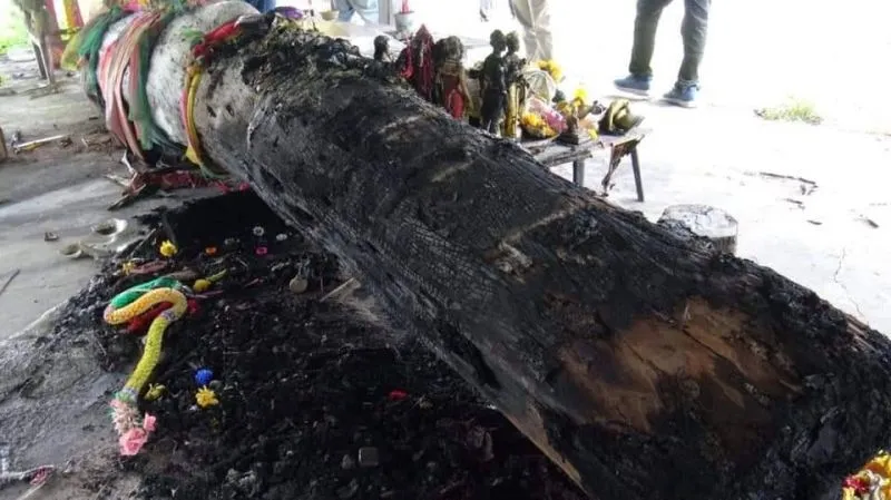 ชาวบ้านบอกเห็นคนเมาขับรถยนต์ลงมาใช้ผ้า 3 สี จุดไฟเผาต้นตะเคียน และศาลเจ้าแม่ ที่อยู่เป็นที่พึ่งทางใจชาวบ้านมากว่า 15 ปี ให้หวยถูกมาตลอด เคยมีคนลบหลู่ขึ้นนั่งคร่อมต้นตะเคียน เช้ามาจมน้ำเสียชีวิต ช่วงเกิดไฟลุกพรึบชาวบ้านได้ช่วยกันตักน้ำมาดับ ต้นตะเคียนและศาลเจ้าแม่เสียหาย ส่วนสาเหตุอยู่ระหว่างการสอบสวนของเจ้าหน้าที่ และติดตามชายที่ชาวบ้านเห็นขับรถยนต์ลงมาใช้ผ้า 3 สี จุดไฟเผาต้นตะเคียน และศาลเจ้าแม่ เพื่อหาสาเหตุที่แท้จริงต่อไป