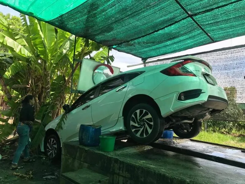 วันที่ 29 ตุลาคม เป็นอีกหนึ่งเรื่องราว ที่มีชาวเน็ตแห่แชร์กันอย่างมาก เมื่อผู้ใช้เฟซบุ๊กชื่อ Nutchar Aomsin ได้โพสต์ภาพ หลังไปใช้บริการร้านล้างรถแห่งหนึ่งใน จ.ระยอง เมื่อช่วงเช้าที่ผ่านมา ในขณะที่เด็กของร้านดังกล่าว จะขับรถขึ้นไปยังแท่นล้าง แต่อาจจะด้วยความที่ไม่ชินระบบของรถเกียร์ออโต้ ทำให้รถพุ่งตกลงไปจากแท่น เข้าไปในดงกล้วยที่อยู่ด้านล้าง