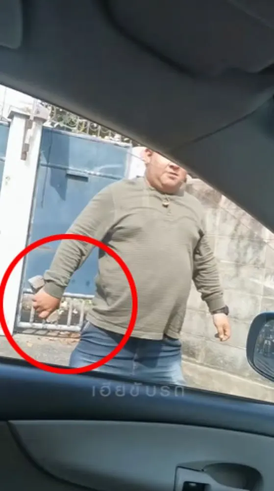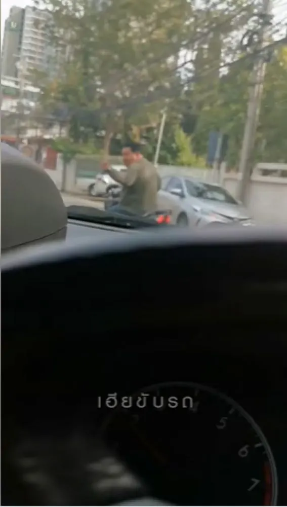 คลิปดังกล่าวเป็นคลิปของจยย.คันหนึ่ง ที่จะมีเรื่องกับคนขับแท็กซี่ ซึ่งจยย.ได้ขับรถมาปาดหน้า พร้อมกับหยิบหินก้อนใหญ่พร้อมปะทะ แต่พอเดินเข้ามาเห็นแท็กซี่ถือกล้องอยู่ ถึงกับอุทานลั่น โห่ ถ่ายทำพ่อหรอ ก่อนที่จะหน้าเสียพร้อมเดินเอาหินกลับไปวางที่เดิม ก่อนจะไล่ๆแท็กซี่ให้ขับไปแต่โดยดี